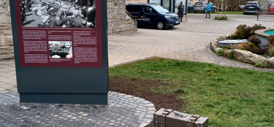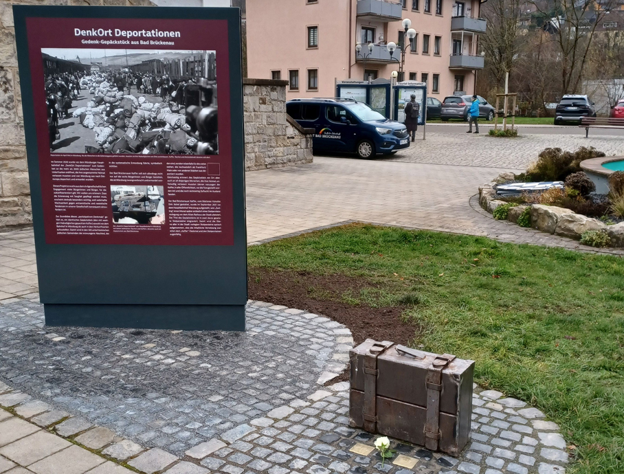 Der Bad Brückenauer Koffer, vom Mottener Künstler Dirk Jäckel gestaltet, wurde im September 2021 vor dem Hauptbahnhof Würzburg aufgestellt; sein „Zwilling“ einen Monat später anlässlich einer Stolpersteinverlegung vor dem Alten Rathaus der Stadt platziert. Der Titel des Gepäckstücks ist in zwei davor gesetzte Stolpersteine eingraviert. Damit wird die Ebene aller in der Stadt verlegten Stolpersteine optisch aufgenommen, also die inhaltliche Vernetzung zwischen dem „Koffer“-Denkmal und den Stolpersteinen augenfällig.